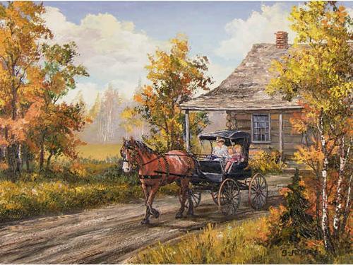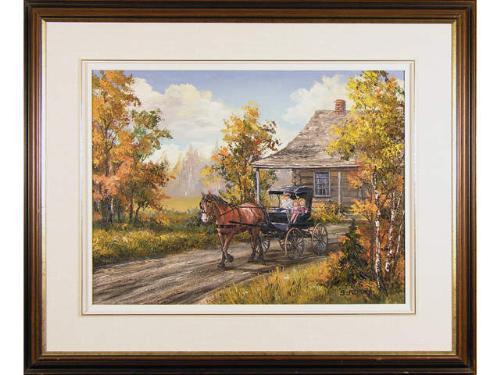 [Canadian 1944-1990] COUNTRY PLEASURES Oil on board 18 x 24 ins. Signed & titled