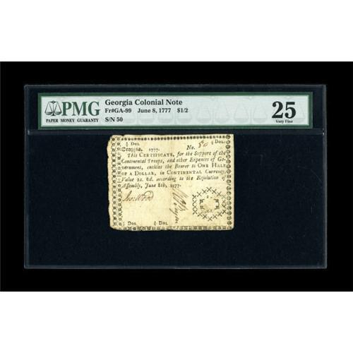 Georgia June 8, 1777 $1/2 PMG Very Fine 25.
