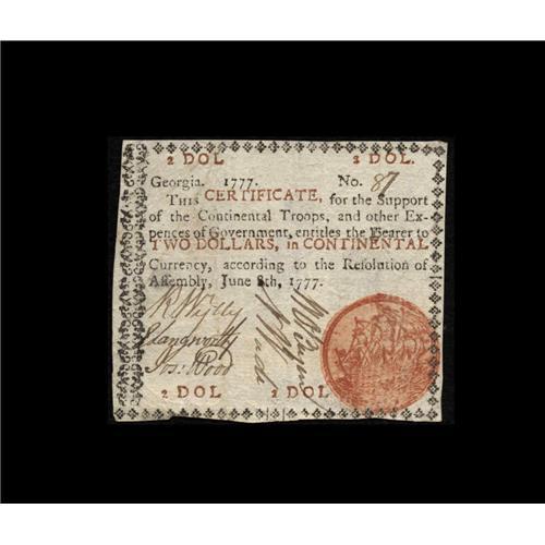 Georgia June 8, 1777 $2 Very Fine-Extremely Fine. Georgia June 8, 1777 $2 Very Fine-Extremely Fine.