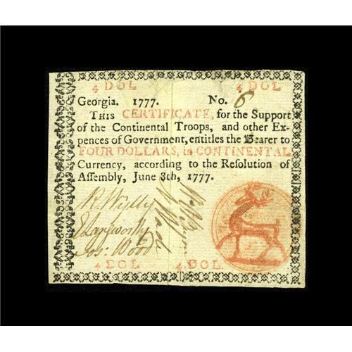 Georgia June 8, 1777 $4 Very Fine-Extremely Fine. Sever