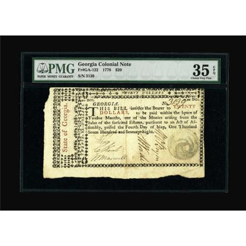 Georgia May 4,1778 $20 PMG Choice Very Fine 35