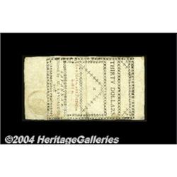 Georgia May 4, 1778 $30 Extremely Fine. Closely margined all around, and with a tiny tip at the lower left corner restored, but a solid note with an extremely sharp vignette and no problems save those mentioned. All five signatures are clean and bold, including that of William Few, who went on to sign the United States Constitution in 1787. A well-printed, attractive note from one of the scarcest colonies. <BR><BR><B>Important notice:</B> Heritage usually auctions material at the rate of 200-250 lots per hour. On some occasions eBay Live bid software or the Internet may not be able to keep up with the pace of the auction. We recommend placing a realistic absentee bid now as insurance to avoid disappointment. Occasionally the auctioneer may eliminate or reject an eBay Live bid, and the auctioneer may also reopen a lot after the close of the eBay live bidding (usually because we missed an audience bid), and may reject your bid even if it shows you as the winning bidder. By bidding via eBay Live, you agree that Heritage may award the lot to another bidder at its sole discretion under the circumstances described above or any other reasonable circumstances. Since eBay bids are not shown to us until we open the lot on the floor, we treat those bids just like floor bids. In most cases the floor responds before the eBay bid is presented to us, due to Internet lag time, so for consistency we have made it a policy that floor bids are always considered first over tie eBay live bids. Also please note that all Heritage lots purchased through eBay Live carry a 20% Buyer's Premium. Please make sure you read the Terms and Conditions before you bid. <BR><BR><B>IMPORTANT ANNOUNCEMENT ABOUT RESERVES:</B> Heritage now divulges all reserves on its web site 7 days before every auction. If you want to know whether the reserve on this lot has been met, and if not, what the reserve amount is, please visit this lot page on the HeritageCoin.com web site, or email: bid@HeritageGalleries.com