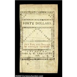 <TABLE cellSpacing=0 cellPadding=0 width="100%" bgColor=#000000 border=0><TBODY> <TR><TD width="100%"><TABLE cellSpacing=1 cellPadding=3 width="100%" border=0><TBODY><TR><TD width="100%" bgColor=#79735c><FONT face=arial color=#ffffff size=3><B>Description</B> </FONT></TD></TR><TR><TD width="100%" bgColor=#ffffff><FONT face=arial size=2><B>Georgia May 4, 1778 $40 Extremely Fine.</B></I> Beautifully margined without a hint of a defect or restoration of any kind. All five signatures are bold, as is the blue dove seal. Even the blue-tinted "GEORGIA" at the left is distinct on this pretty example. (1,500-up ) </FONT></TD></TR></TBODY></TABLE></TD></TR></TBODY></TABLE><BR><TABLE cellSpacing=0 cellPadding=0 width="100%" bgColor=#000000 border=0><TBODY><TR> Important notice: Heritage usually auctions material at the rate of 200-250 lots per hour. On some occasions eBay Live bid software or the Internet may not be able to keep up with the pace of the auction. We recommend placing a realistic absentee bid now as insurance to avoid disappointment. Occasionally the auctioneer may eliminate or reject an eBay Live bid, and the auctioneer may also reopen a lot after the close of the eBay live bidding (usually because we missed an audience bid), and may reject your bid even if it shows you as the winning bidder. By bidding via eBay Live, you agree that Heritage may award the lot to another bidder at its sole discretion under the circumstances described above or any other reasonable circumstances. Also please note that all Heritage lots purchased through eBay Live carry a 20% Buyer's Premium. Please make sure you read the Terms and Conditions before you bid.</TR></TBODY></TABLE>
