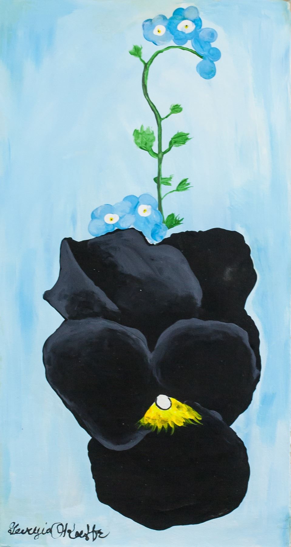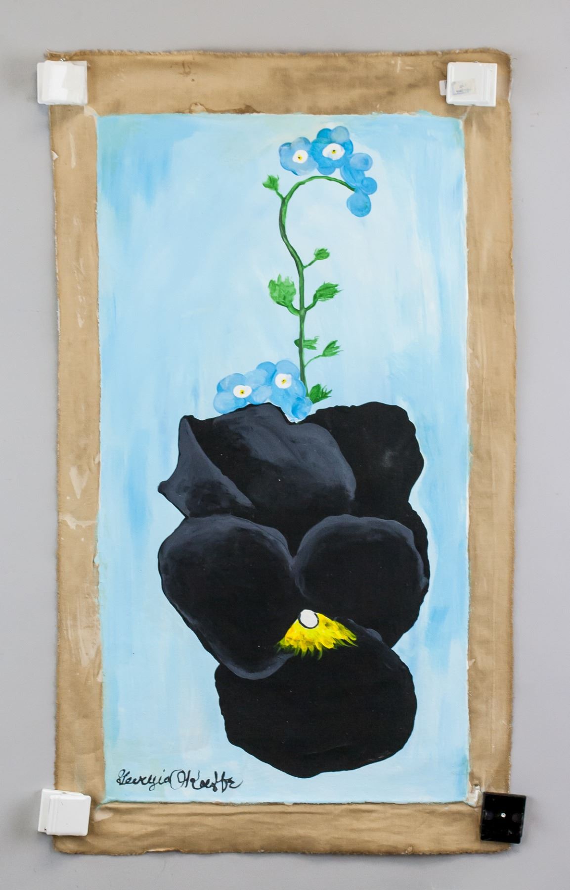 Oil on canvas, unstretched. Featuring a modernist still of flowers. Signed Georgia O'KKeeffe on the lower left corner. Attributed to Georgia O'Keefe (1887-1986, American). 59 x 32 cm (23 x 12.25 in). PROVENANCE: This lot carries limited provenance from an Upper New York estate
