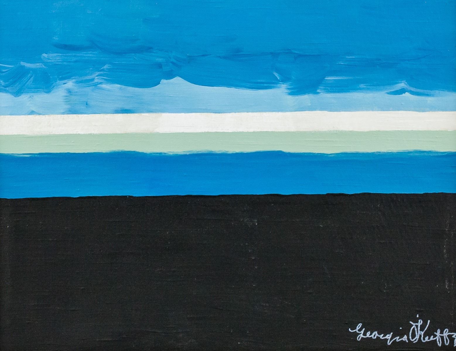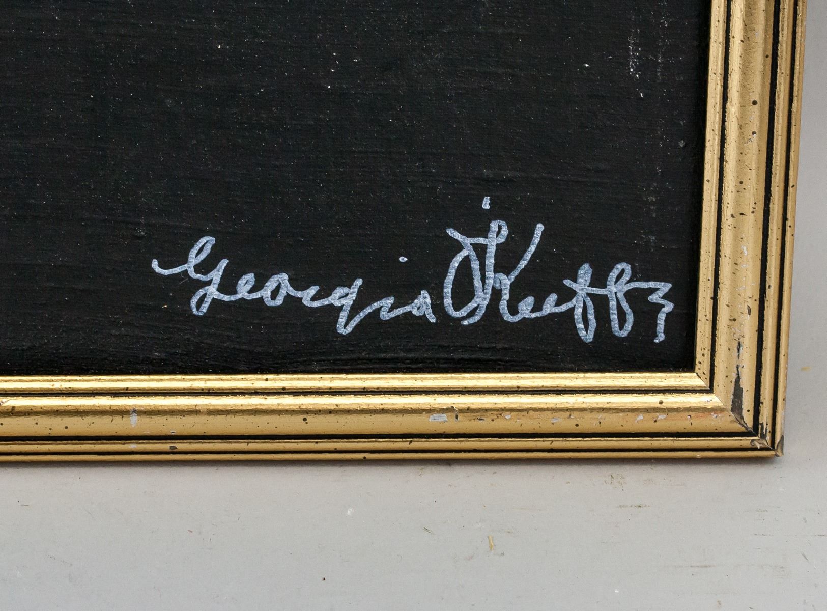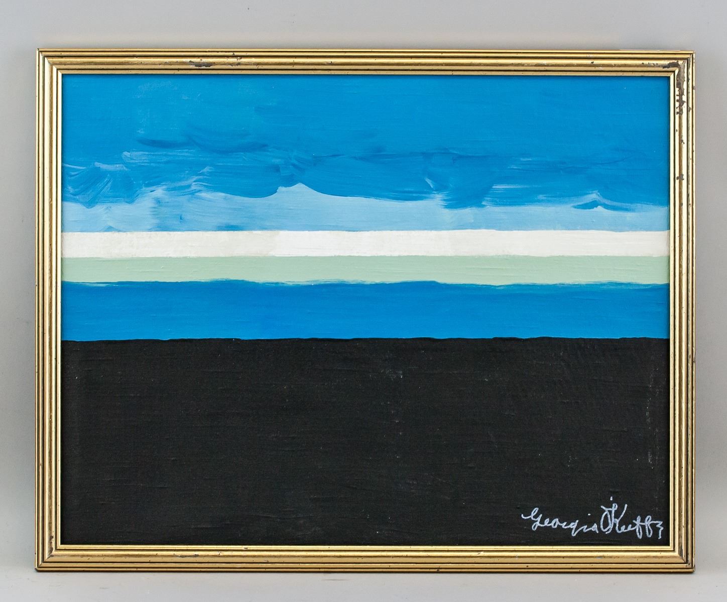 Oil on canvas, framed. Featuring an abstract expressionist composition. Signed Georgia O'Keeffe on the lower right corner. Attributed to Georgia O'Keeffe (1887-1986. American). 36 x 46 cm (14 x 18 inches). PROVENANCE: Southern Ontario estate