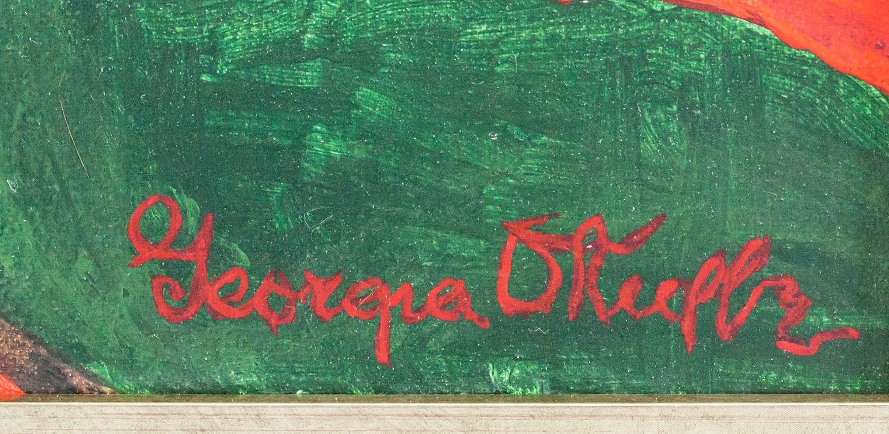 Oil on canvas, framed. Featuring a budding flower. Signed Georgia O'Keeffe on the lower right corner. Attributed to Georgia O'Keeffe (1887-1986, American). 51.5 x 39.5 cm (20.5 x 16 inches). Framed size: 55 x 43 cm (21.5 x 17 inches). PROVENANCE: This lot carries limited provenance from an Eastern European estate