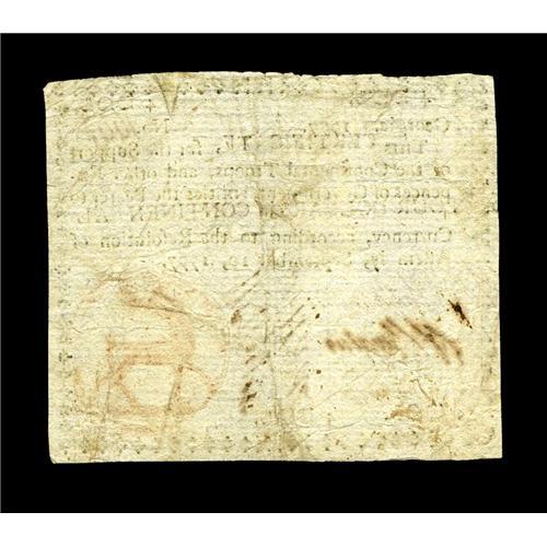 <B>Georgia September 10, 1777 $4 Extremely Fine.</B></I> The note has seen some use and circulation, which is evident on the blank back. But from the face, this note gives the appearance of a Gem Uncirculated piece. The clarity and color of the orange stag vignette is spectacular and all five signatures are dark and bold. The note also boasts amazing margins for the Colony and the paper has kept all its bright clean color. A stunningly beautiful Georgia.