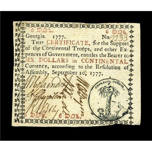 Georgia September 10, 1777 $6 About New. A simply outst Georgia September 10, 1777 $6 About New.