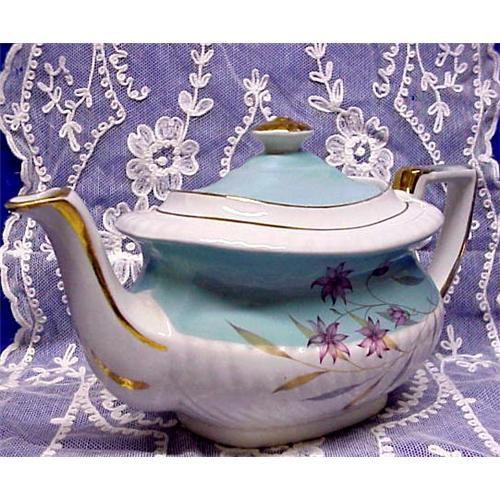 This is lovely vintage tea pot, what they call 6-cup size, Made in England by Georgian, Gibson's, Love the oval shape, and dainty floral pattern over two color tea pot, Very good condition, free of chips or cracks, gold is little faded on the handle, Measures from spout to the handle 10" x 5" - US Buyer please pay 8.00 for shipping plus insurance if desired - We prefer Paypal - Thank You very much for looking!