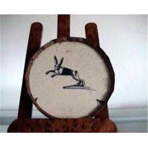 This is a Georgian tile mounted in a copper frame. Subject matter "Rabbit"