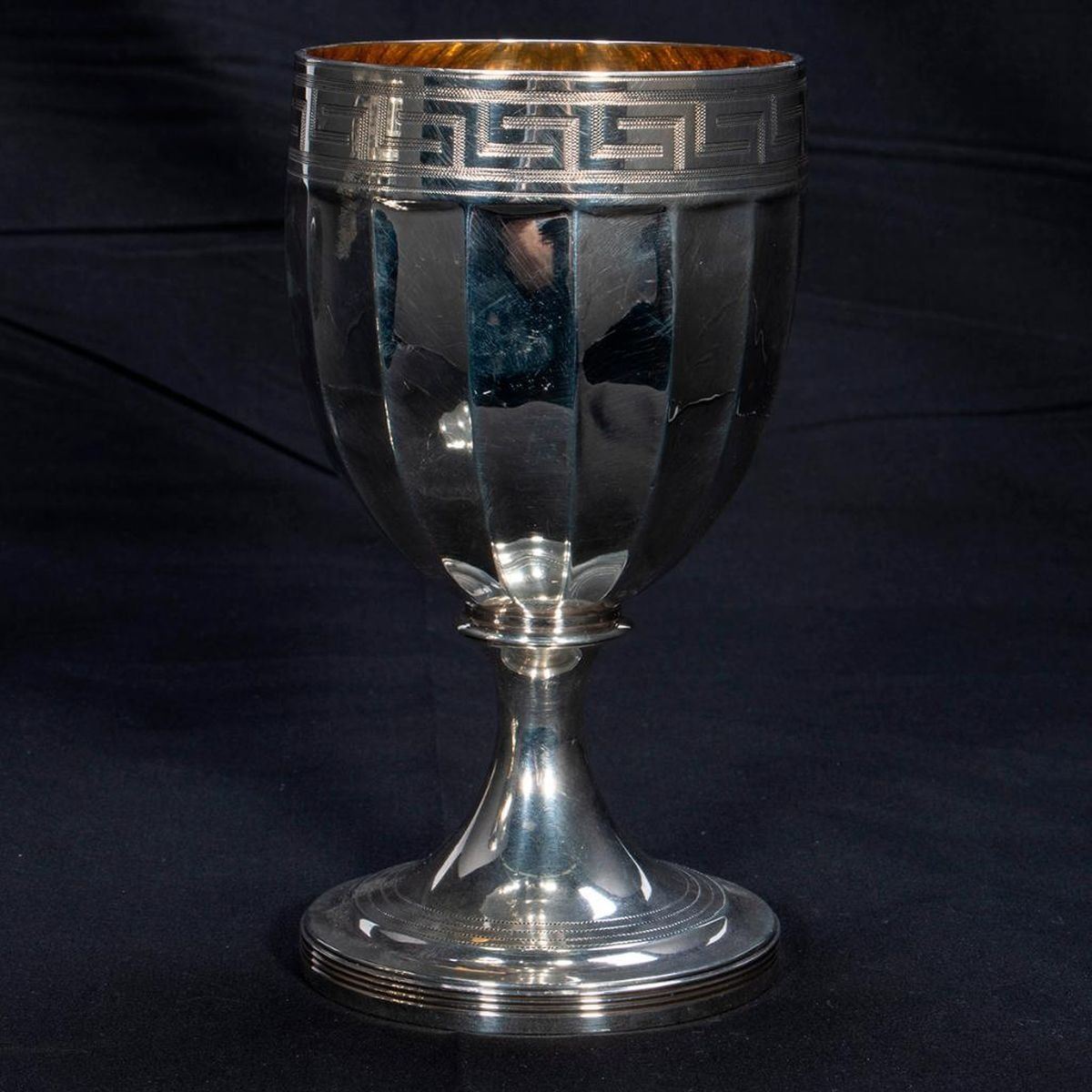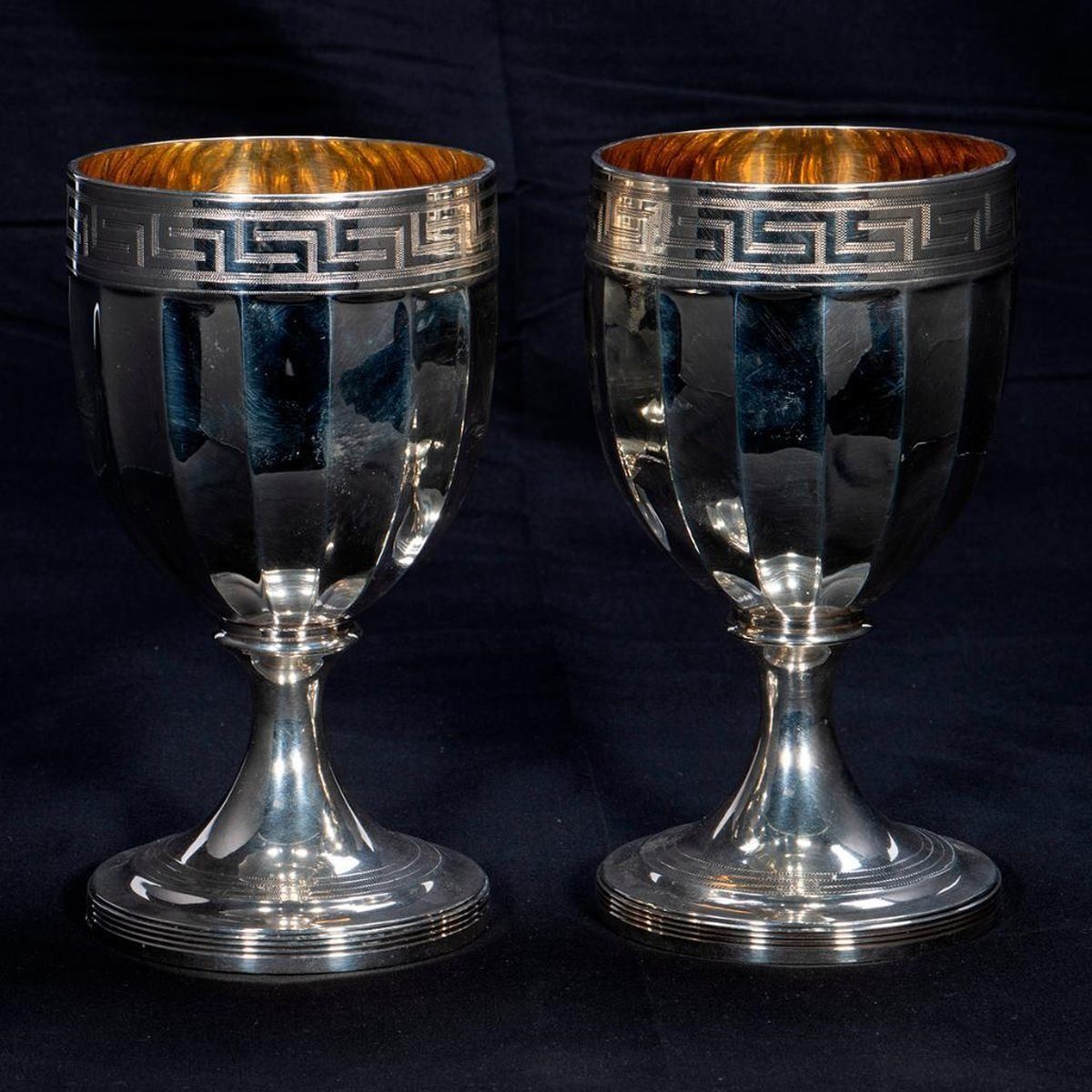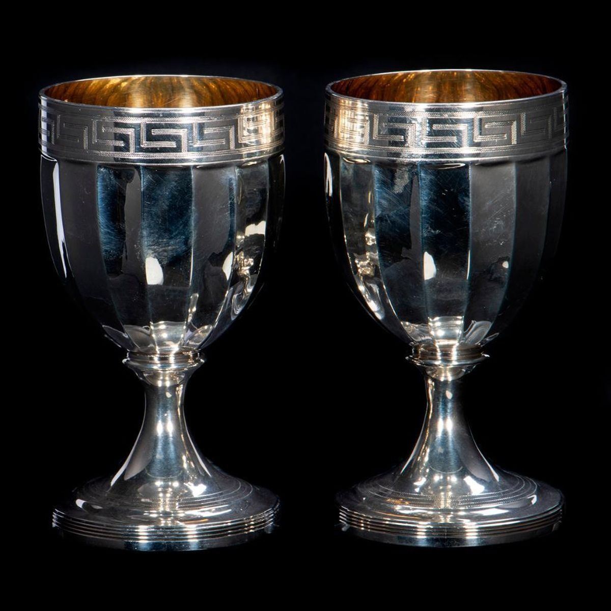 A pair of Georgian hallmark silver goblets, 7 inches in height each, 622 g total weight