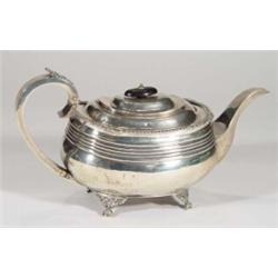 Georgian silver teapot with ebony knop and acanthus leaf handle, London 1819, approx 18ozs