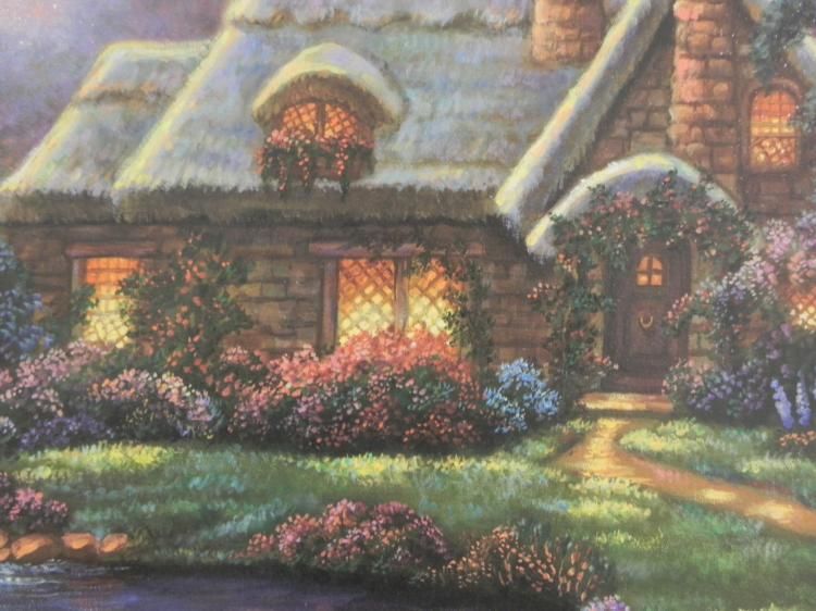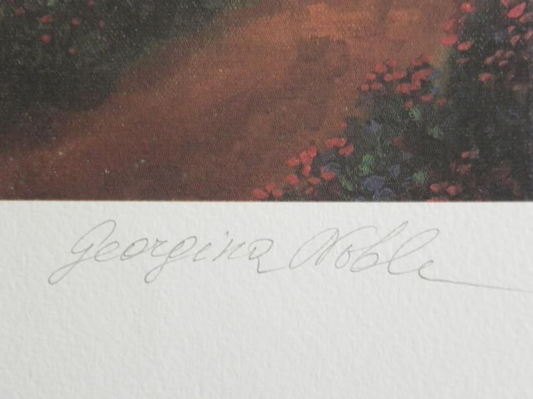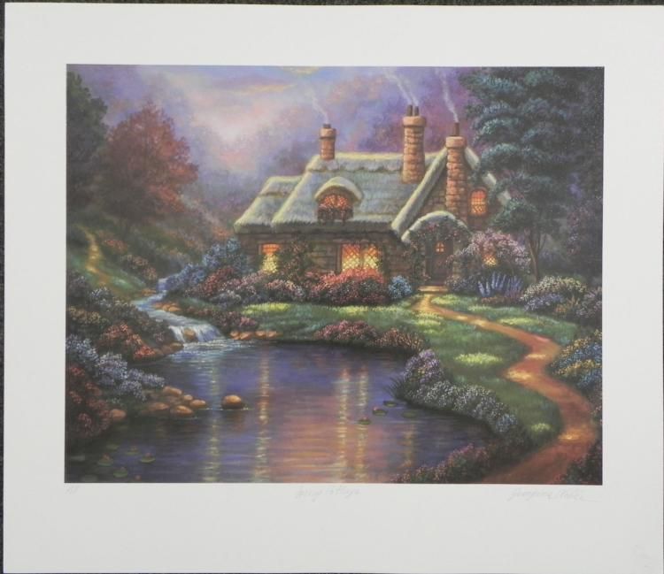 A peaceful cabin sits in the woods on this quiet evening... * Artist: Georgina NobleTitle: Spring CottageMedium: Litho print on paper with silk screen overlaySignature: Signed by artist, lower rightEdition: Artist ProofImage size: 14" x 18" * Sheet size: 19" x 22" * Condition: Excellent * * * *