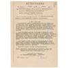 Soviet general (1896–1974) who led the defeat of the Germans at Stalingrad and the entry into Berlin during World War II. DS, in Russian, one page both sides, 8.25 x 11.25, December 10, 1947. Attestation of the Head of one of the Departments of the Political Headquarters of the Odessa Military District, Nikifor Ulyanovich Plokhotnyuk. Signed on the back in red ink by Zhukov. Uniform toning, expected stamps and notations, and marginal binding holes to left edge, otherwise fine condition.