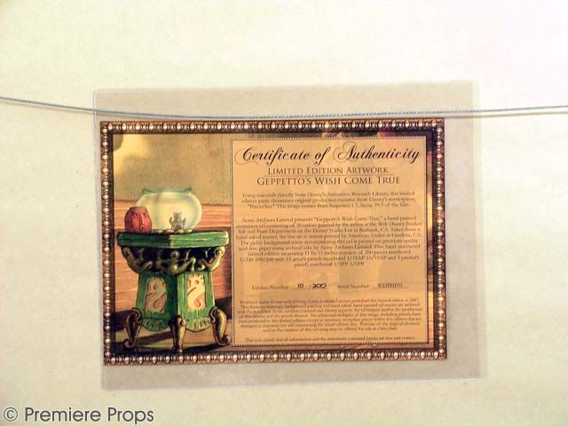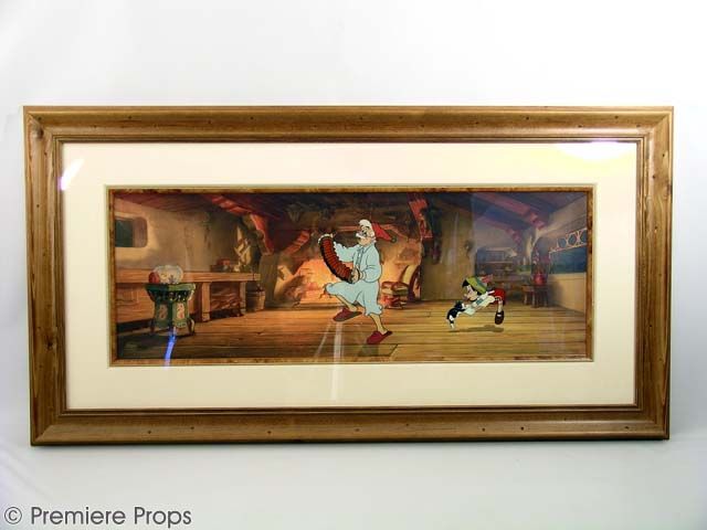 This is a large size, hand-painted animation cell from 'Geppetto's Wish Come True.' This Limited Edition artwork cel is in beautiful condition and is centered inside a wooden and glass frame. Comes with COA. (approx. 42" x 22") This is an over-sized item and will required additional shipping costs.