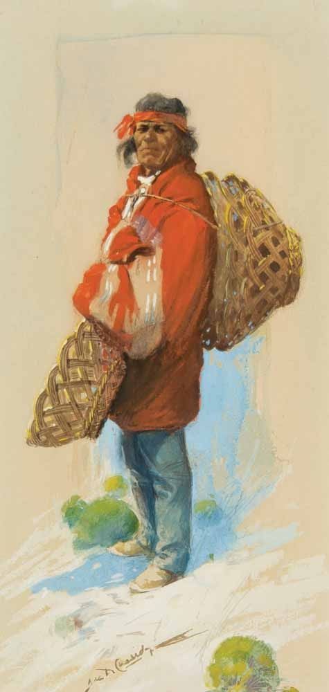 Artist: Gerald Cassidy. Artist Lifespan: 1869-1934. Signed left middle. Dimensions: 12 1/2 x 6 inches Shipping: 15x21. Mixed Media