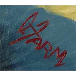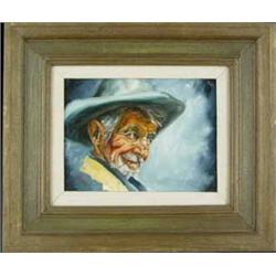 Gerald Farm (b.1935) (New Mexico) Oil on Board. Portrait. 9" x 12.25". signed lower left. Est $1,000 - $1,200.