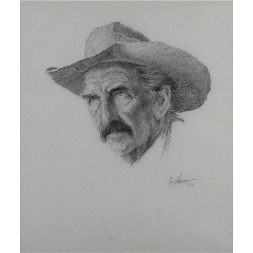 Gerald Farm (1935-), Pencil, Cowboy Portrait, 13" x 11", Signed right. Provenance: Iron Eyes Cody Estate.