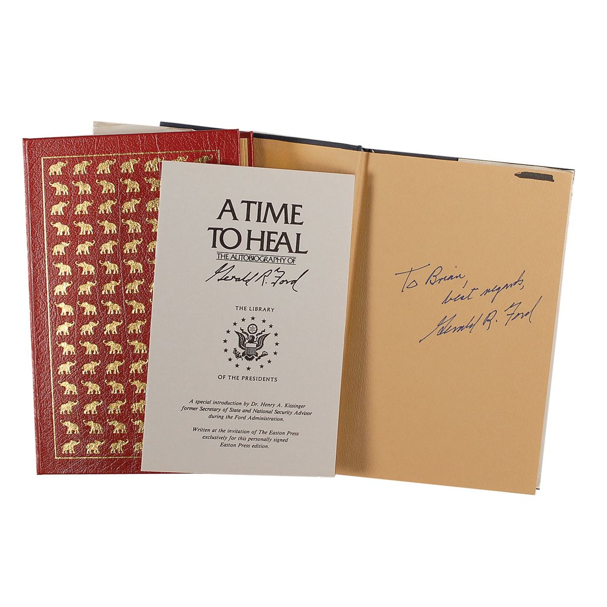 Two hardcover editions of A Time to Heal: a first edition, first printing signed and inscribed on the first free end page; and a limited edition Easton Press edition, signed on a special presentation page. In fine condition, with some creasing to first edition’s dustjacket.