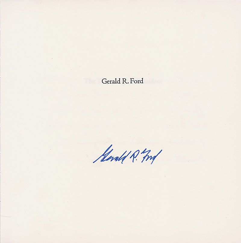 Two signed limited edition books: The Thirty-Eighth President. First edition. Reno, Nevada: Jack Bacon & Company, 2001. Hardcover, 8.25 x 8.25. Each signed on a prefatory page in blue felt tip, “Gerald R. Ford.” In overall very fine condition.