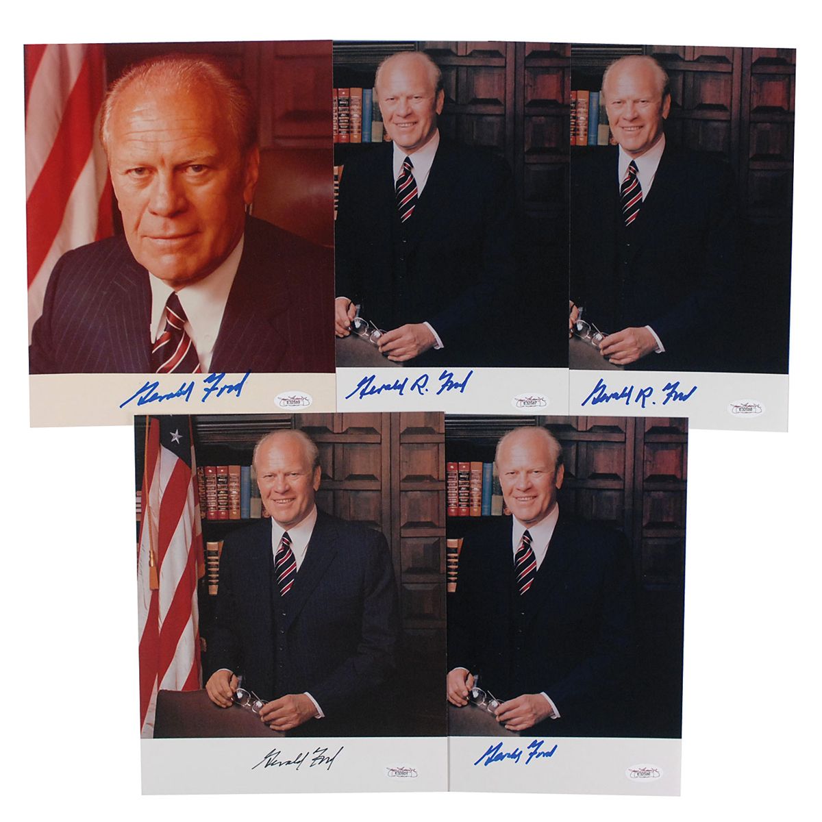 Five color 8 x 10 photos of Ford, various finishes, each signed in the lower border in blue or black felt tip. In fine condition, with a James Spence authentication label affixed to lower corner of each photo.