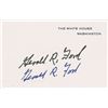 White House card signed in blue felt tip below a preprinted signature, “Gerald R. Ford.” In fine condition. Accompanied by an unsigned postcard and a full letter of authenticity from PSA/DNA.