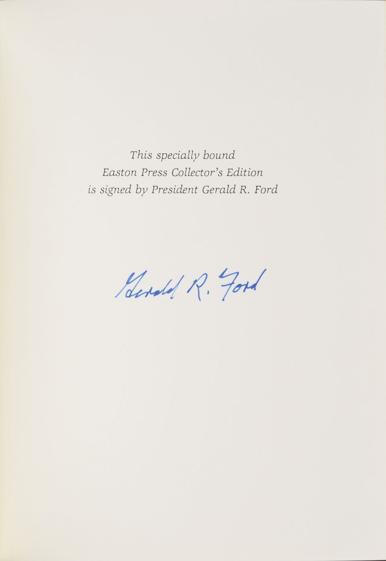 Signed book: Humor and the Presidency. Collector's edition. Norwalk, CT: Easton Press, 2014. Leatherbound hardcover, 7.75 x 9.5, 162 pages. Signed on the colophon in blue felt tip, "Gerald R. Ford." In very fine condition.