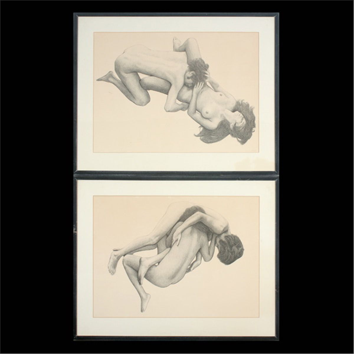 GERALD GOOCH (American b.1933) Two works: Lovers, 1968 Lithographs on paper Sight: 19.50 x 25.25 inches/ 49.5 x 64.1 centimeters Signed and dated lower right "Gooch, 68" Frame: 26.50 x 32 inches/ 67.3 x 81.2 centimeters In good condition. Framed, matted, and glazed.