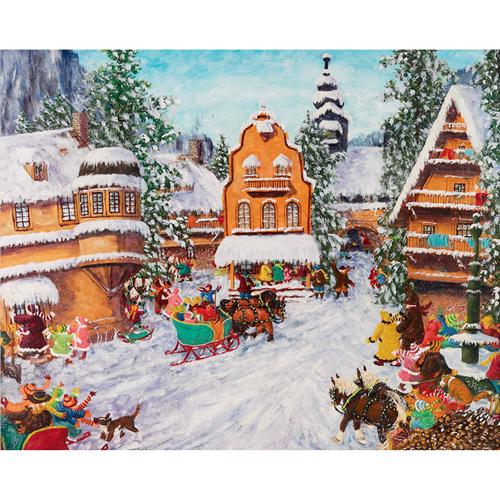 Gerald Lee Nees (American, b.1938), "Winter Scene", c. 1980; oil/board, 23.5" x 30", signed. Nees was paralyzed as a young boy in Indiana, but learned how to paint holding a brush in his mouth.