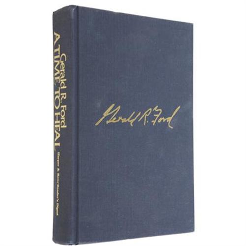 <B>Gerald R. Ford. </B></I><B><I>A Time to Heal: The Autobiography of Gerald R. Ford</B></I></B></I><B>.</B></I> New York: Harper & Row and The Reader's Digest Association, Inc., 1979. <BR>First edition. Signed and dated by the author on the front free endpaper. Octavo. 454 pages. Illustrated with photographs. <BR><BR>Blue cloth with titles stamped in gilt on the spine and front board. Cloth worn and boards exhibit light shelf wear. No dust jacket. Contents bright and tight. Very good.<BR><BR><BR><b>Shipping:</b> Books & Catalogs (<a target="_blank" href="http://www.heritageauctions.com/common/shipping.php">view shipping information</a>)