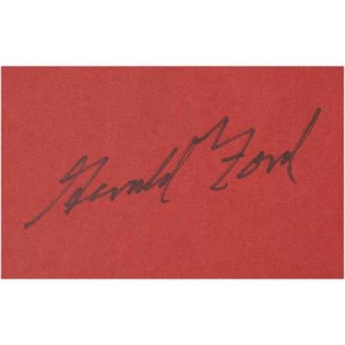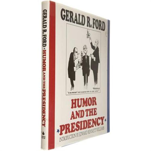<B>Gerald R. Ford: Signed </B></I><B><I>Humor and the Presidency</B></I></B></I> (New York: Arbor House, 1987), first edition, 162 pages, illustrated, blue binding with white-cloth spine and red lettering, red endpapers, 8vo (9.5” x 7.5”), dust jacket (in protective sleeve). In this amusing volume, former President Gerald Ford takes a good-natured approach to describing the connections between “laughter and leadership” and his status as a “victim” of merciless humor. The front endpaper is signed <I>“Gerald Ford”</B></I>. The book is in very fine condition with no defects; the dust jacket is fine with minor scuffing.<BR><BR><b>Shipping:</b> Books & Catalogs (<a target="_blank" href="http://www.heritageauctions.com/common/shipping.php">view shipping information</a>)