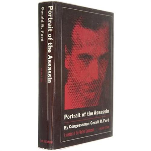 <B>Gerald R. Ford: Signed </B></I><B><I>Portrait of an Assassin</B></I></B></I> (New York: Simon and Schuster, 1965), first edition, 510 pages, untrimmed, red-cloth binding with gold lettering and black decorations, 8vo (8.75” x 5.75”), dust jacket (in protective sleeve). After serving on the Warren Commission investigating the assassination of President Kennedy, Gerald Ford was assigned to prepare this biography of Lee Harvey Oswald. Collaborating with his Congressional campaign manager John R. Stiles, Ford completed the work in 1965, while he was serving as House Minority Leader. The title page is signed “Gerald R. Ford” in blue ink. The book is in very good condition with minor wear; the dustjacket is very good with minor staining on the back. <BR><BR><b>Shipping:</b> Books & Catalogs (<a target="_blank" href="http://www.heritageauctions.com/common/shipping.php">view shipping information</a>)