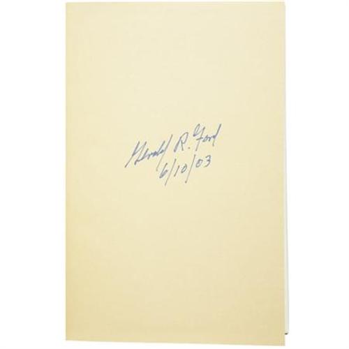 <B>Gerald R. Ford: Signed and Dated </B></I><B><I>A Time to Heal: The Autobiography of Gerald R. Ford</B></I></B></I> (New York: Harper and Row, 1979) first edition, 454 pages, illustrated, navy-blue-cloth binding with gold lettering and Ford facsimile signature, 8vo (9.5” x 6.25”), dust jacket (in protective cover). In this unpretentious and intimate autobiography, 38th President Gerald R. Ford (1913-2006) candidly recalls his personal and political triumphs and challenges, including his work on the Warren Commission and his controversial decision to pardon the disgraced Richard M. Nixon. The book, signed in full and dated 6/10/03 on the front endpaper, is in as new, unread condition.<BR><BR><b>Shipping:</b> Books & Catalogs (<a target="_blank" href="http://www.heritageauctions.com/common/shipping.php">view shipping information</a>)