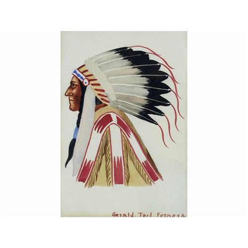Canadian [1925-1975] PORTRAIT WITH HEADDRESS watercolour on paper 5.5 x 3.5 in. (14 x 8.9 cm) with HUNTER BY TEEPEE watercolour on paper 5.5 x 3 in. (14 x 7.6 cm) each signed Lot of Two
