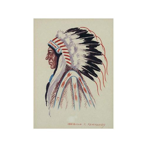 Canadian [1925-1975] CHIEF WITH HEADDRESS watercolour on paper 6.25 x 4.5 in. (15.9 x 11.4 cm) signed