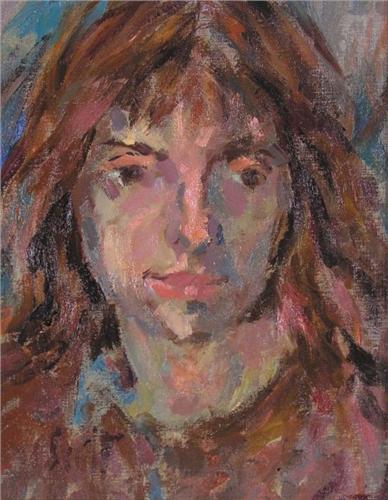 UNTITLED; WOMAN WITH LONG HAIR - Oil - on board - <Br>15 ins. X 12 ins.