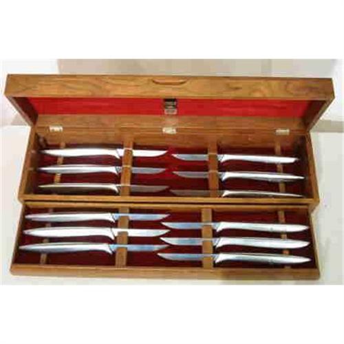 <tr><td>Title:Gerber Steak knives (12) in Walnut box</td></tr>