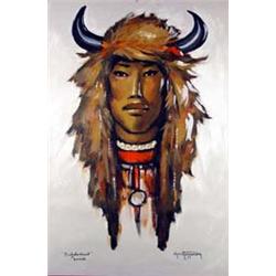 Gerda Christoffersen. Oil on canvas. "Buffalo Hunt Sioux." 35" x 24". Estimate $1,000-$1,500.