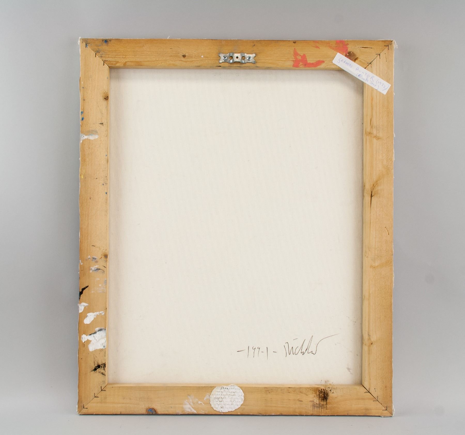 Acrylic on canvas, abstract, untitled; signed and attr. Gerhard Richter (German, b. 1932). 24 x 20 inch (60.96 x 50.8 cm). Richter is a German visual artist. Richter has produced abstract as well as photorealistic paintings, and also photographs and glass pieces. His art follows the examples of Picasso and Jean Arp in undermining the concept of the artist's obligation to maintain a single cohesive style. PROVENANCE: Private collection, Europe