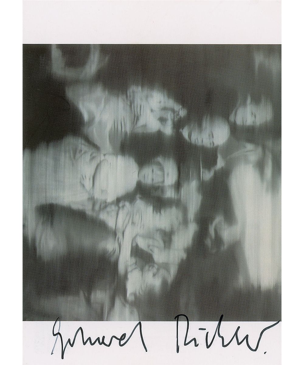 German artist (born 1932) whose works have achieved world-record prices at auction. Postcard featuring Richter’s 1965 work entitled ‘Familie nach altem Meister,’ 5.75 x 4, signed in the left border in black felt tip. In fine condition.