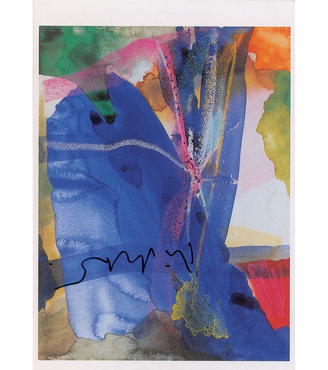 German artist (born 1932) whose works have achieved world-record prices at auction. Color 4 x 5.75 postcard image of his work entitled ‘Felsenlandschaft,’ signed on the front in black felt tip. In very fine condition.
