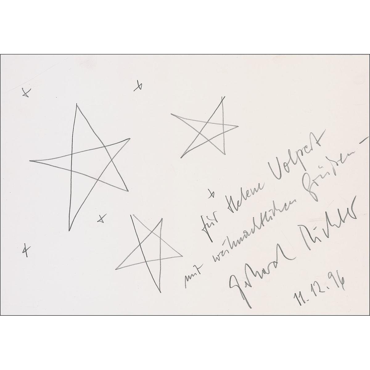 German pop artist. Original signed and inscribed pencil sketch of three stars on an off-white 8.25 x 6 card, signed and inscribed in German, and dated December 11, 1996. In very fine condition.
