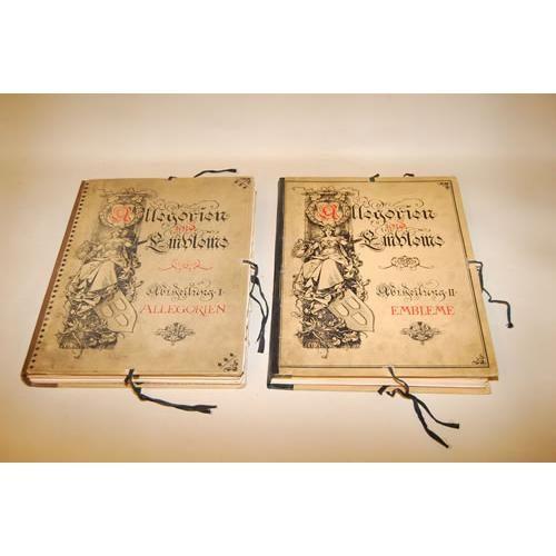 Gerlach, M.. Allegorien Und Embleme - 2 Portfolios. Wien: Gerlach & Schenk, 1882. Elephant Folio - over 15" - 23" tall. Hard Cover. Ex-Library. Good Condition. 353 plates, along with text in German, in 2 original portfolios with ties, library cloth backstrips. Plates show edge chips. ALLEGORIES & EMBLEMS.