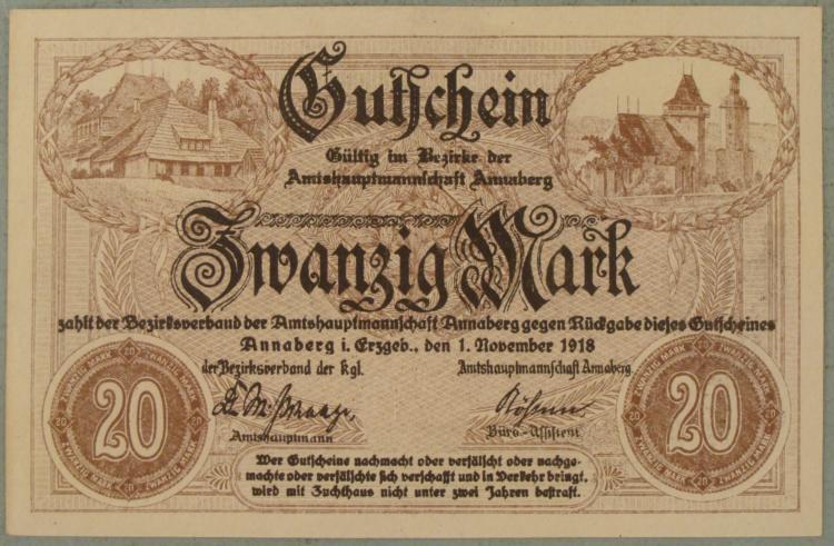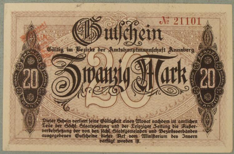 German 20 Mark Gutfchein Paper Money * Rarity: Considered Rare Condition: Uncirculated
