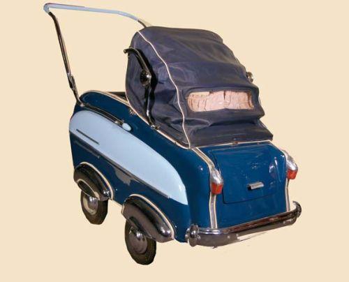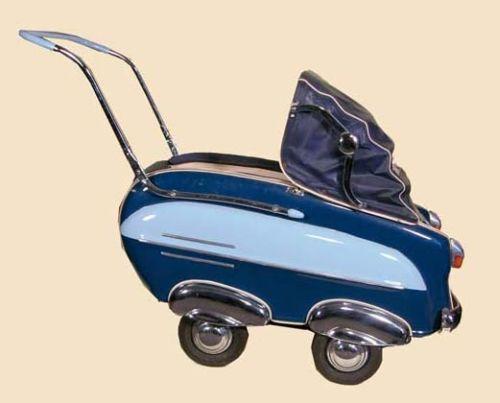 German 40's baby buggy. This automobile like buggy is a real eye catcher. Ex. cond. with the original convertible top.