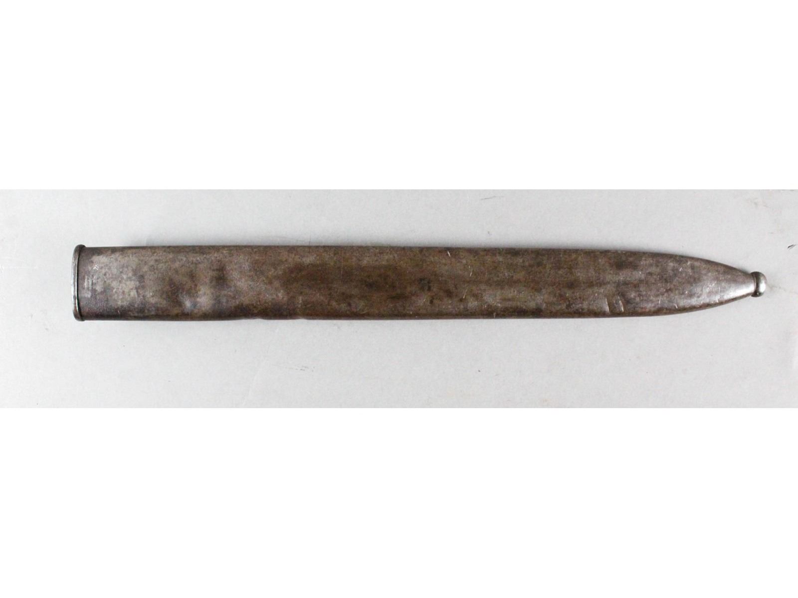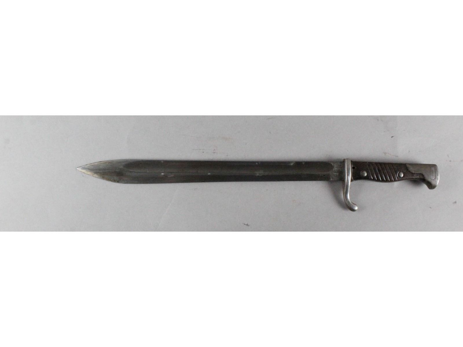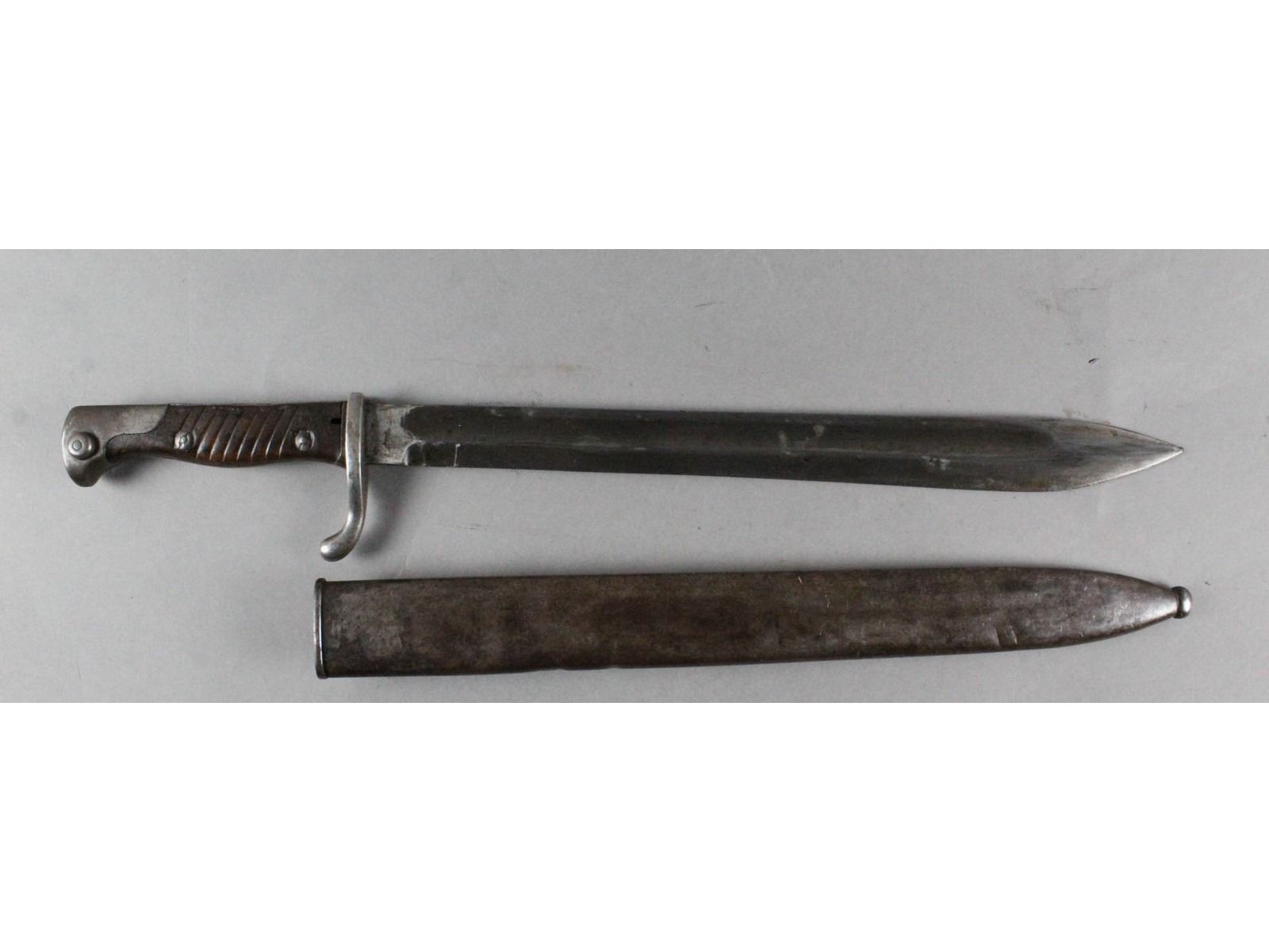 Blade measures 14.25", overall 20.5". Blade is bright with average wear. Made by Weyersberg, Kirschbaum & Cia, 1915. Grips and flash guard showing heavy wear. Pommel is in good condition. Worn scabbard with heavy denting on back. Scabbard made by Waffenfabrek, Mauser-A.G., Obersdorf, 1915.