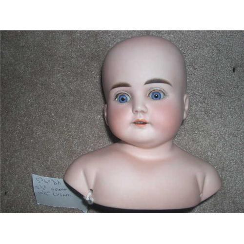 Here is a great bisque turned head on a shoulder plate. She is 5 3/4" tall and 5 1/2" across and the circumference is 10 1/2 inches. She has open and close blue glass eyes. The doll has a pate with plaster around it. She is marked 698 1/2 Germany #10 on the bottom edge of the back shoulderplate. She has 2 sew holes both in the front and back. She has an open mouth with teeth. She has dark eyebrows and paitned upper and lower lashes. She still has the wax on her eyes. Once on a body, she will be great. The turned heads are as early as 1885 but I'm not sure when this one was produced. For many years people thought this could be a Kestner. The quality is outstanding. She is from a smoke free environment. Buyer to pay $15 for shipping, insurance and handling. Thanks for viewing.