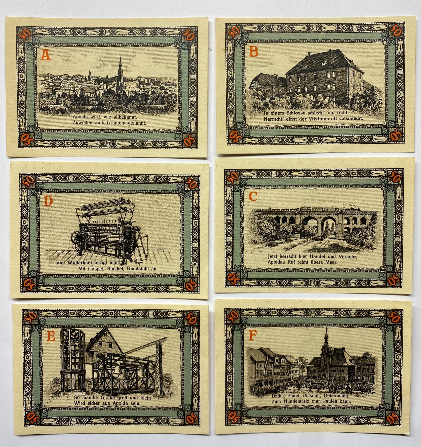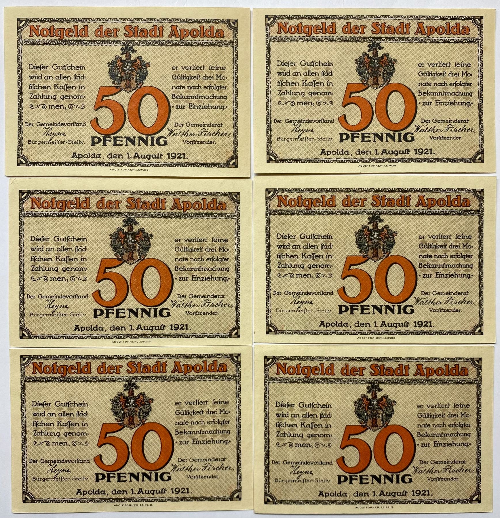 German - Apolda, notgeld, 1921,a set of 6 pcs, 50 pfennig (Total: 6pcs).