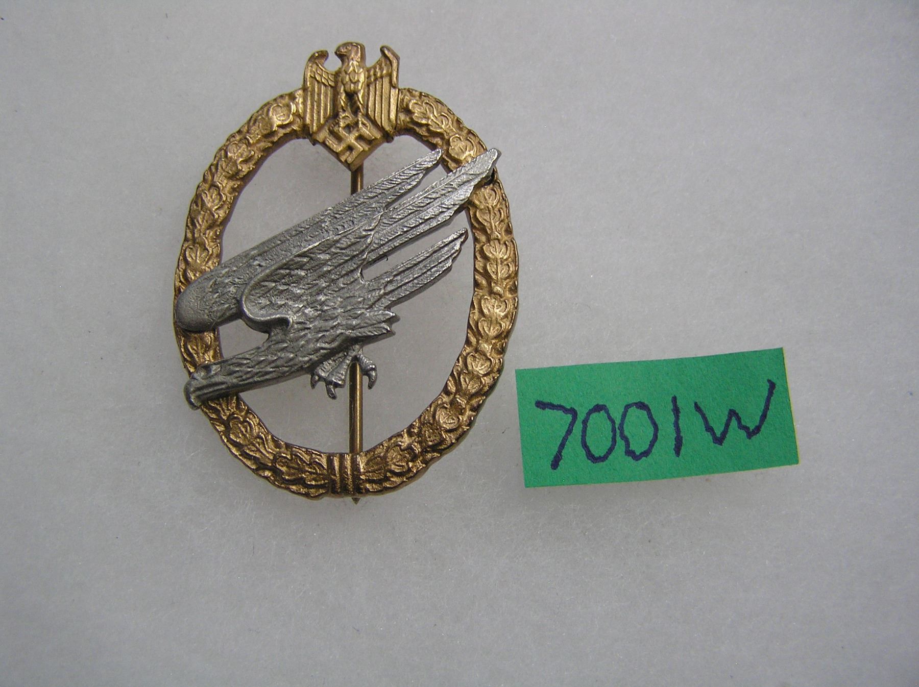 German Army Paratropper badge gold and silver colored WWII style high quality reproduction collectors, re-enactors,historical or theatrical collectors piece est. value $75.00-$80.00