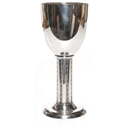 German Arts & Crafts chalice, silver, inscription at top and Herr Dr. H.L. Wenner on foot, marked 65876, 800 WTB, impressed hallmarks, 8.25”h